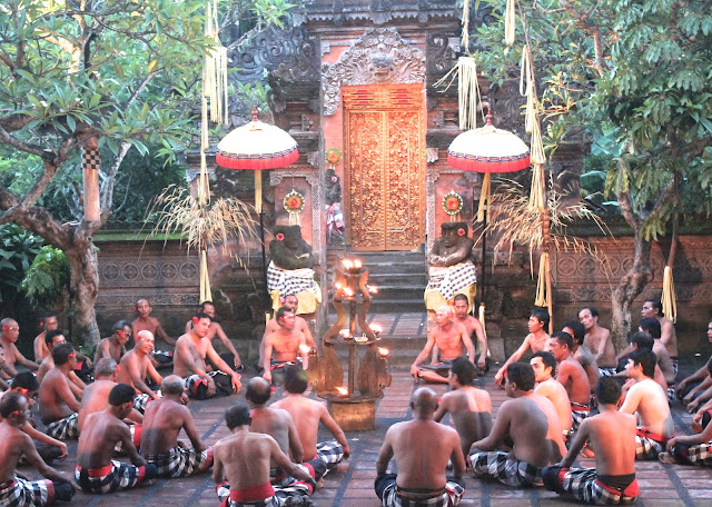 | Kecak dancers in the pervasive black/white (good/evil) cloth |